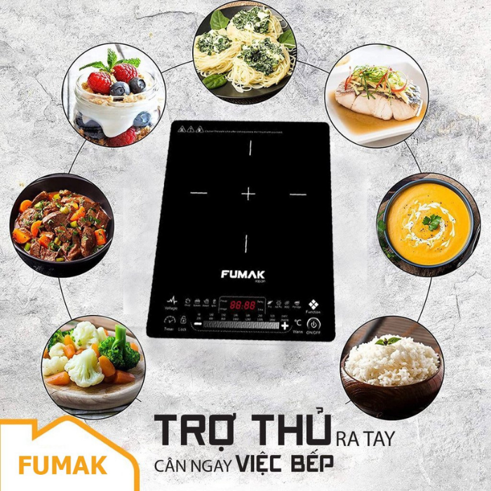 - Bếp từ đơn Fumak công suất 2000W, mức nhiệt tối đa lên đến 270°C