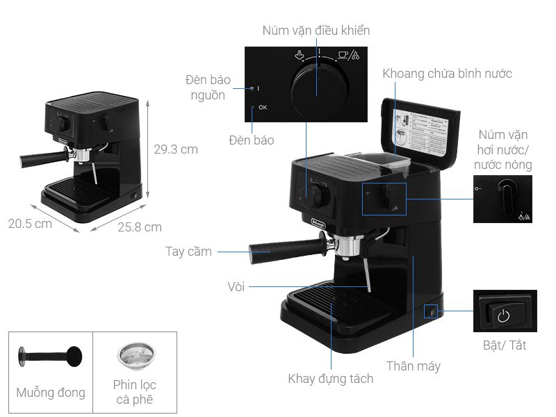 - Tiện Lợi Và Nhanh Chóng: Máy pha cà phê DeLonghi Stilosa EC230.BK được thiết kế để sử dụng dễ dàng, giúp bạn pha cà phê nhanh chóng và tiện lợi mỗi sáng.