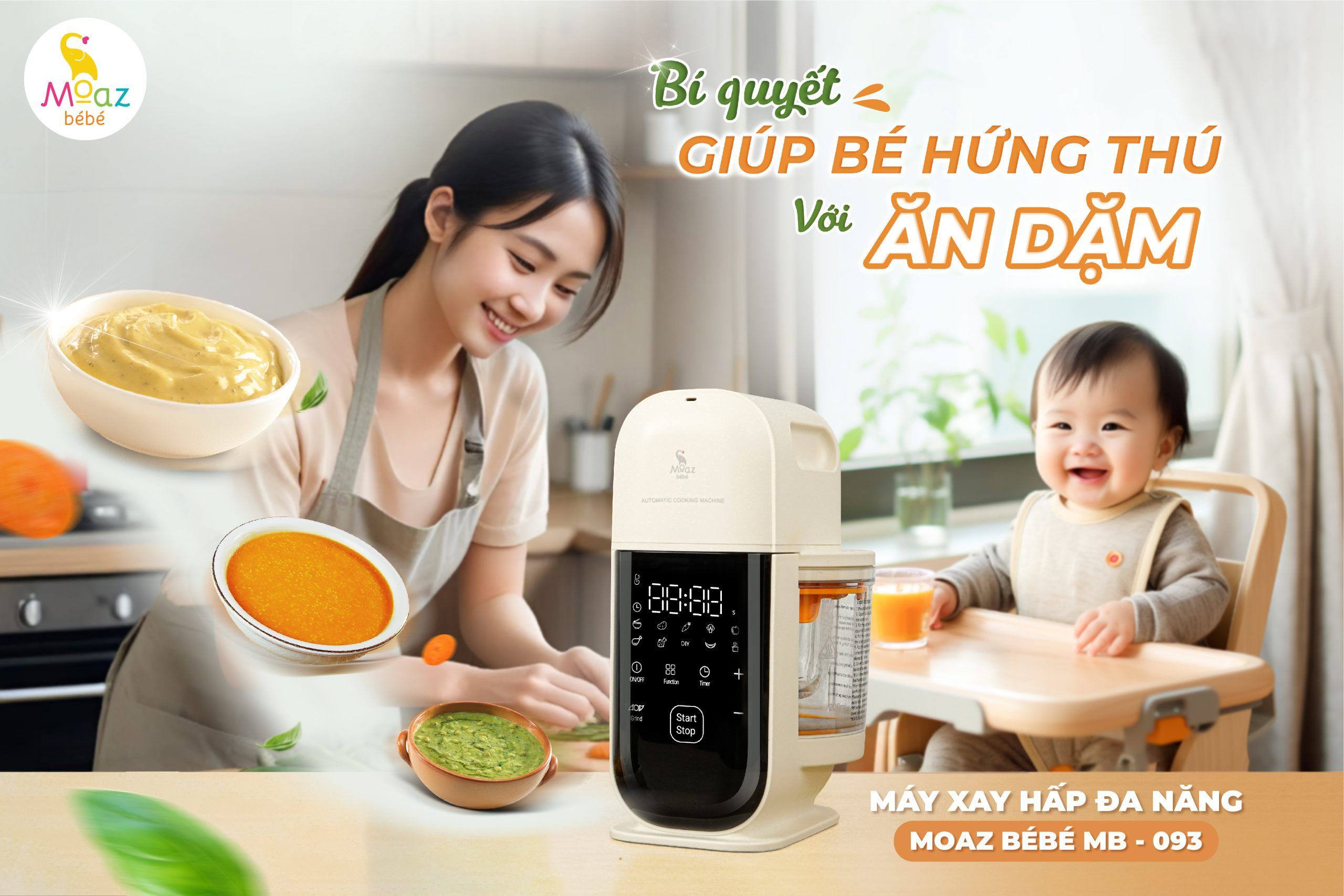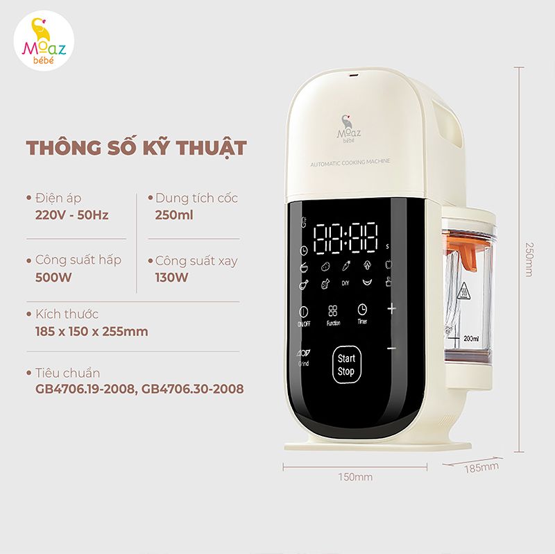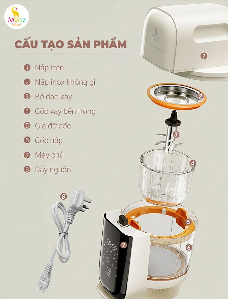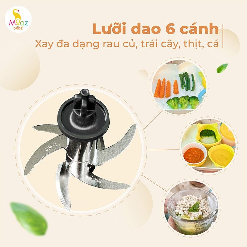 Máy xay hấp đa năng Moaz BéBé MB093 - Dao xay 6 lưỡi bằng thép không gỉ cao cấp