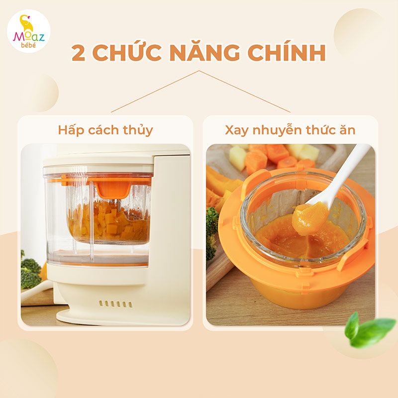 Sản phẩm máy xay hấp đa năng Moaz BéBé MB093 có công dụng hấp, xay, hầm và luộc thức ăn cho bé và cho cả gia đình. Sản phẩm giúp bé được thưởng thức những món ăn chuẩn vị, đầy đủ dinh dưỡng cần thiết. Thiết kế thông minh giúp mẹ dễ dàng thực hiện quá trình chuẩn bị nguyên liệu lẫn nấu ăn nhanh chóng cho bé.